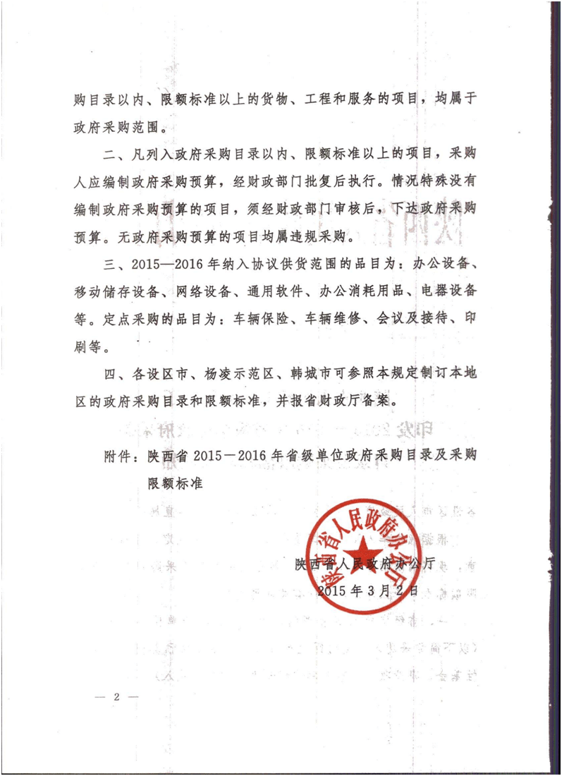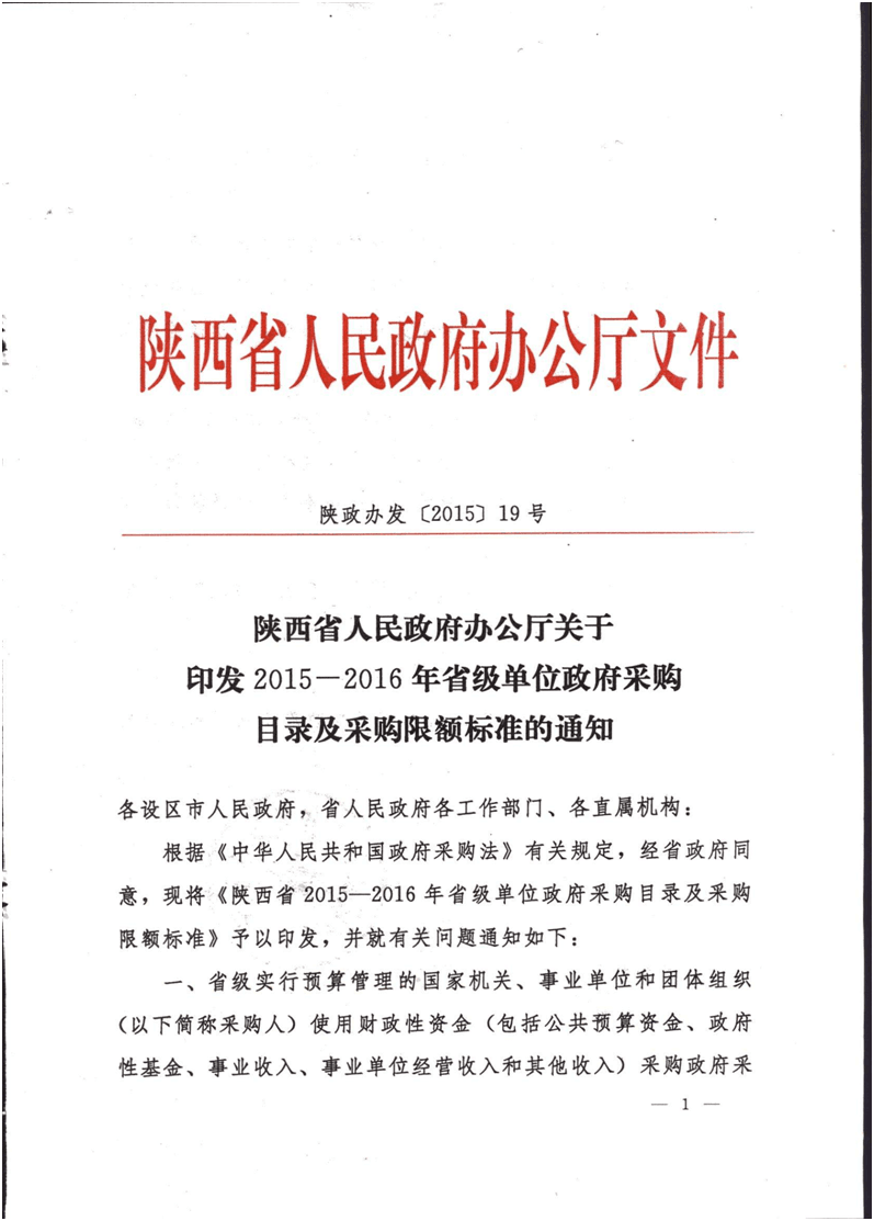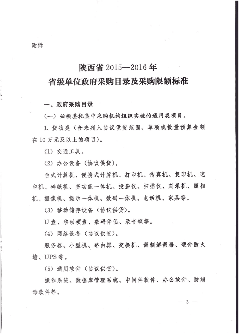 陕西省人民政府办公厅关于印发2015-2016省级单位政府采购目录及采购限额标准的通知